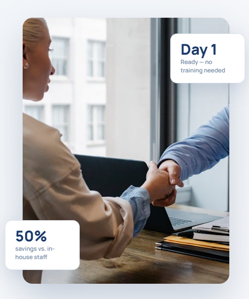 No hiring headaches, no HR drama, no downtime. Reliable support that shows up every day.